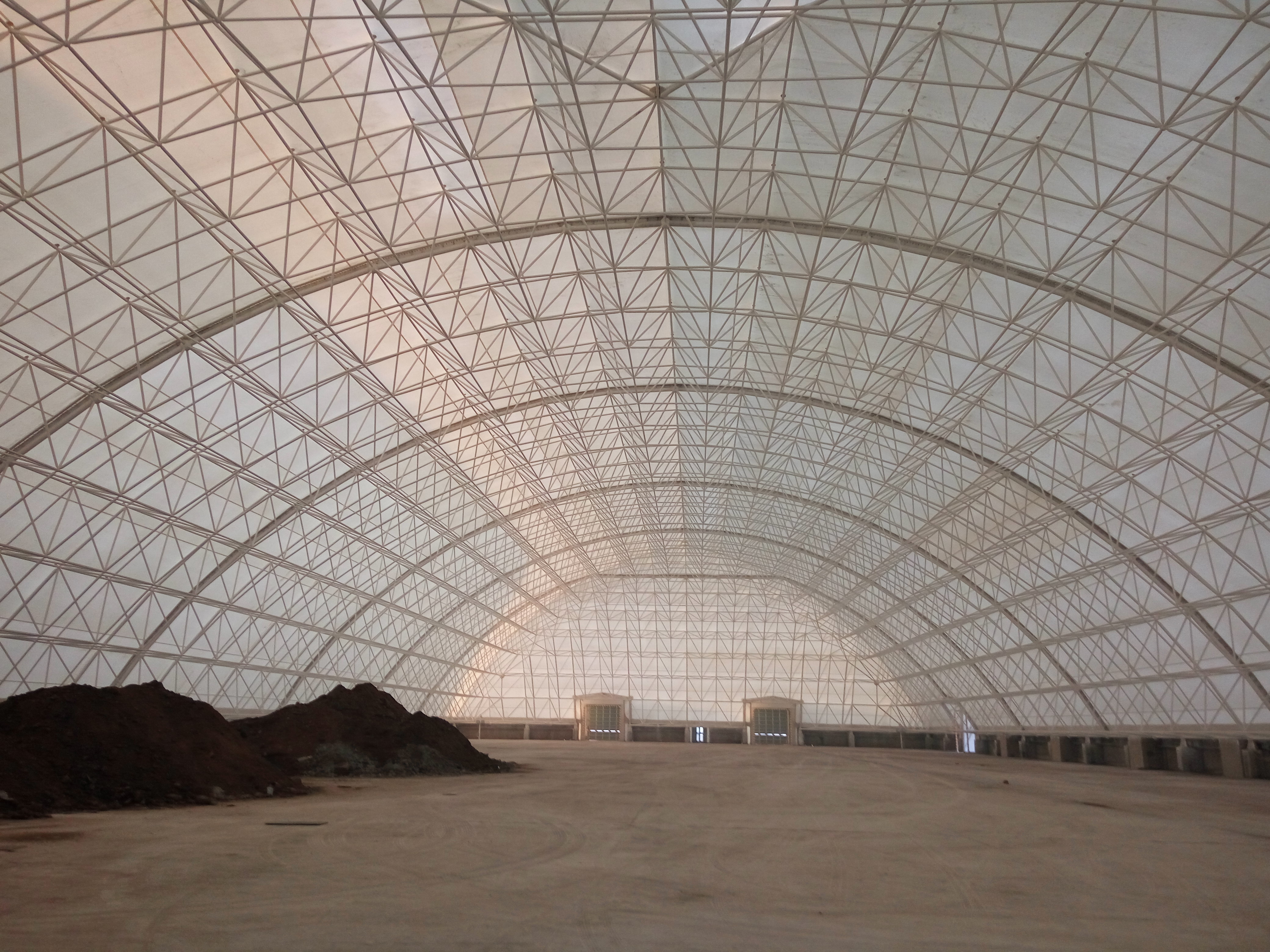 山西長治市瑞達工業園區焦化干煤棚長度200m,跨度為145m2,2網殼矢高 48.300m ,2017年6月投產。