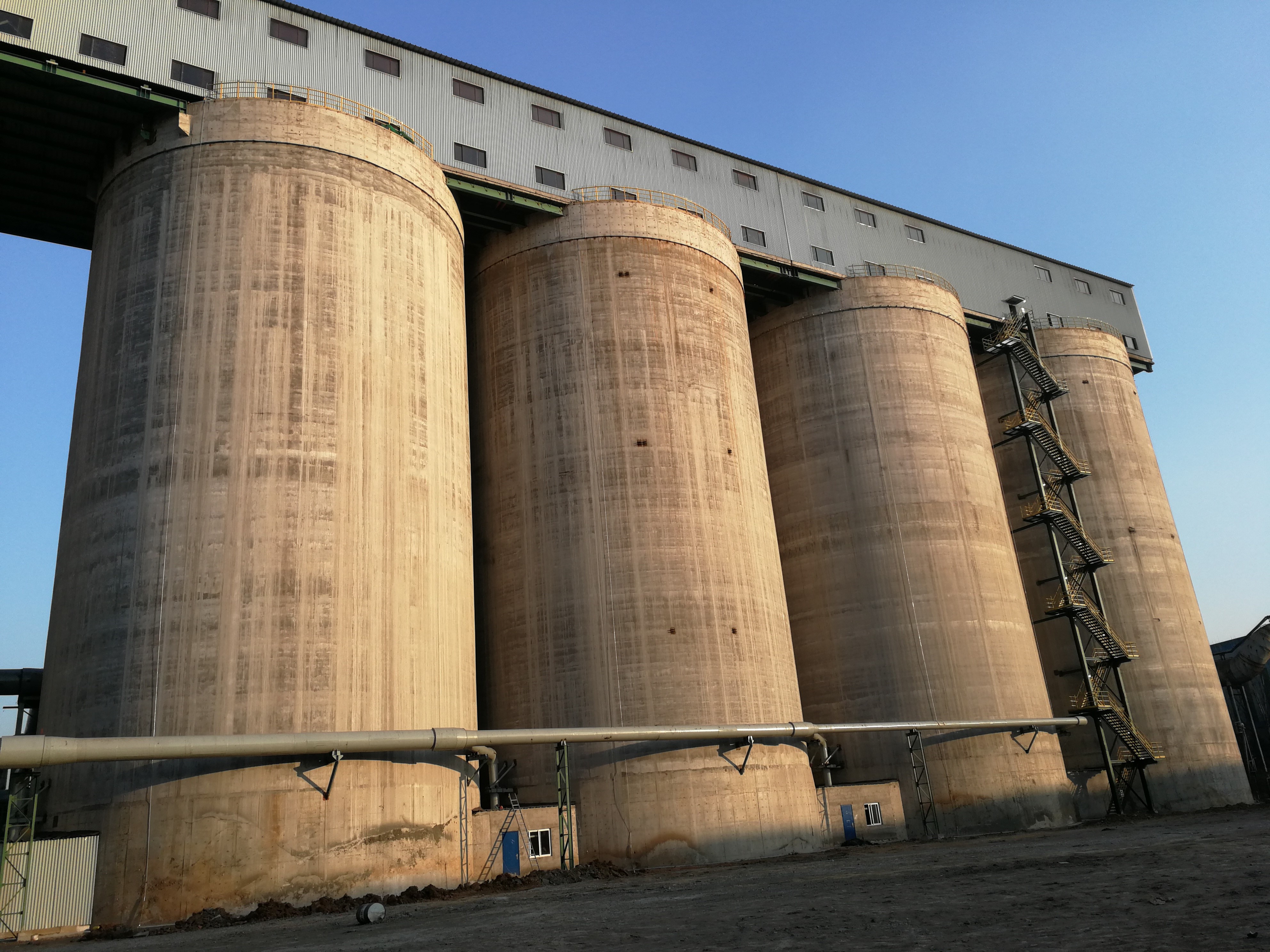 4個直徑24m筒倉,單倉有效貯量約為2.5萬t |